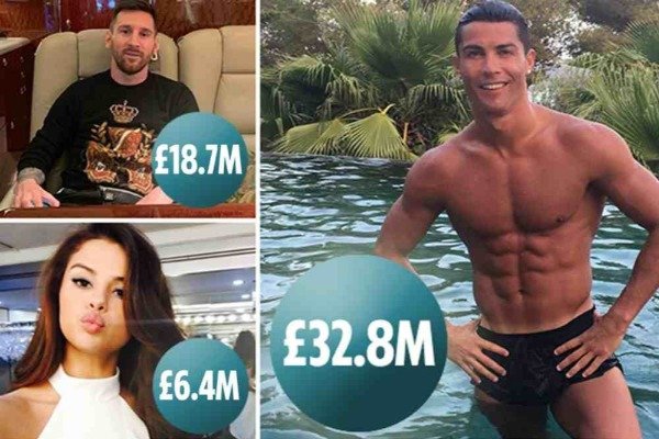 "The Sun" xəbər verir ki, "Yuventus"unfutbolçusu Kriştianu Ronaldohamıdan çox reklam gəliri götürür. Portuqaliyalı hücumçu ötən ildə reklam postlarından 38,2 milyon funt-sterlinq gəlir qazanıb."Barselona"nın hücumçusu Lionel Messinin qazancı 18,7 milyon funt-sterlinq olub.