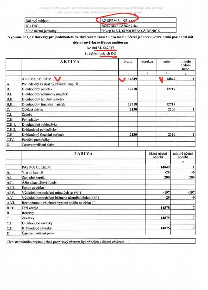 2017-ci ilə aid illik maliyyə hesabatına görə icra başçısına aid bu şirkətin aktivləri 15 milyon kron, yəni yarım milyon dollar civarındadır. Qetd edim ki, Ziyəddin Əliyev bu şirkət üzərindən Brnoda avtosalon və servis mərkəzi açıb.